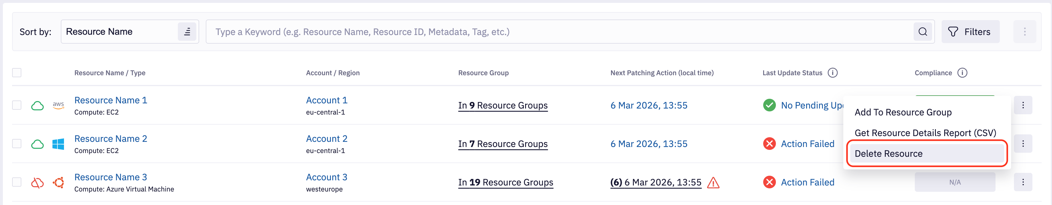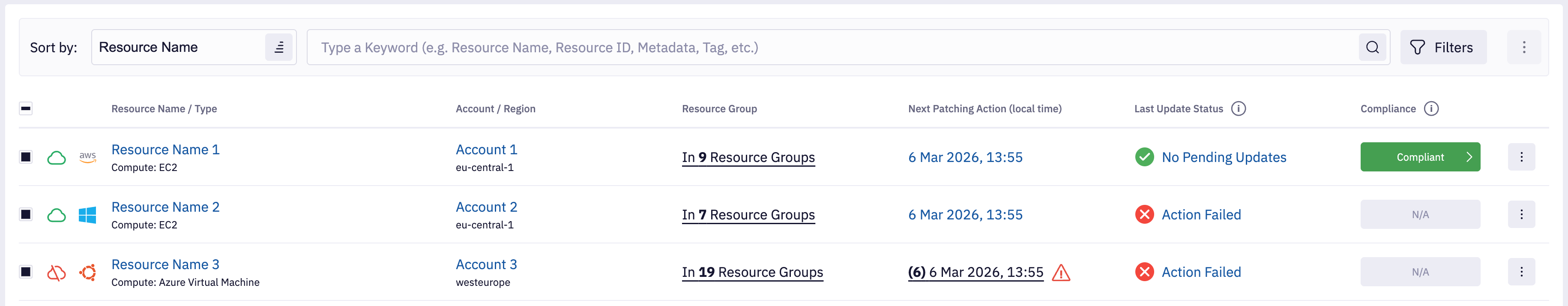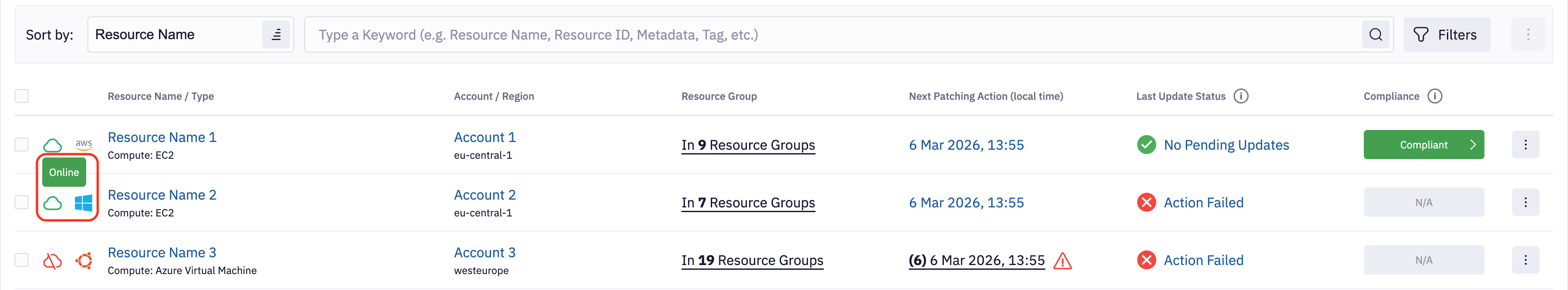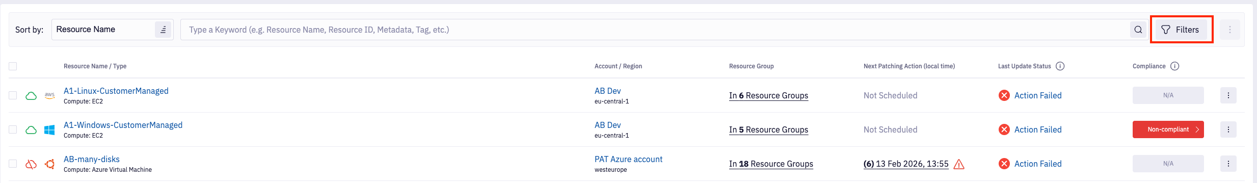 Last Update Status - Filter resource based on last Resource Update Status. This filter corresponds to the counters that visible above list of resources. If you select exclude update statuses, then they won't be reflected in counters.