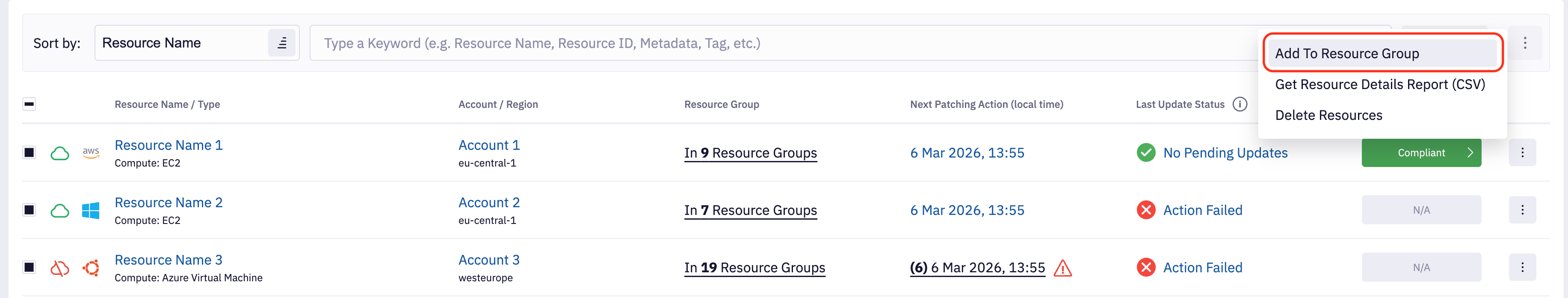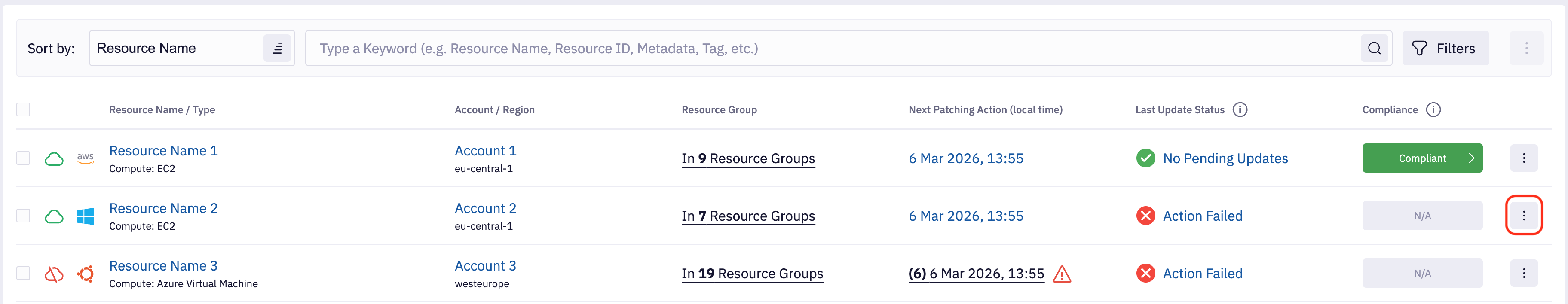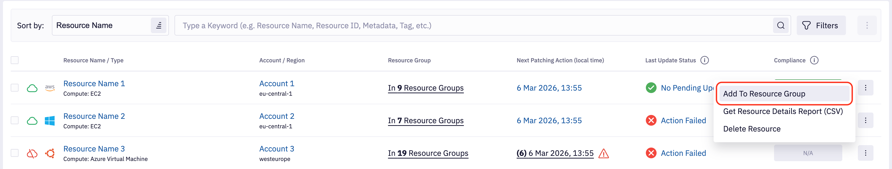 Last Update Status - Filter resource based on last Resource Update Status. This filter corresponds to the counters that visible above list of resources. If you select exclude update statuses, then they won't be reflected in counters.