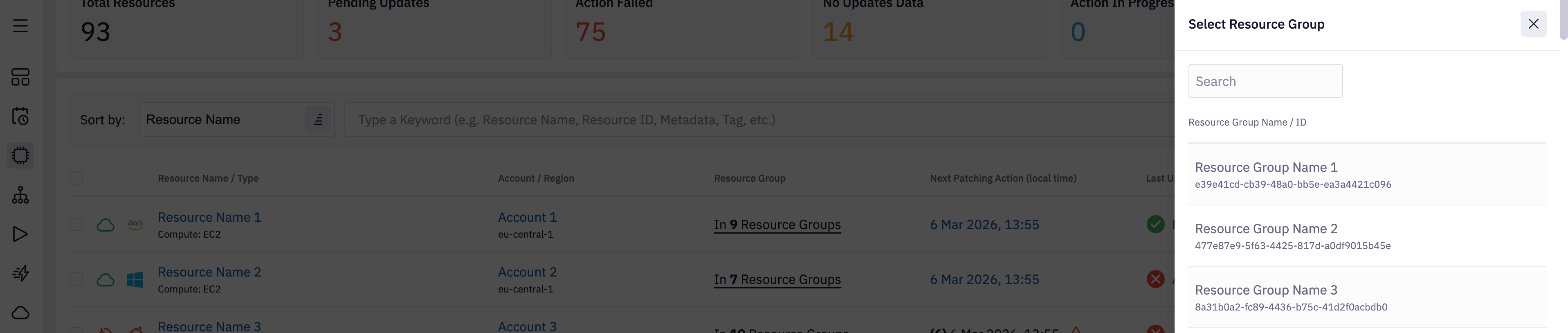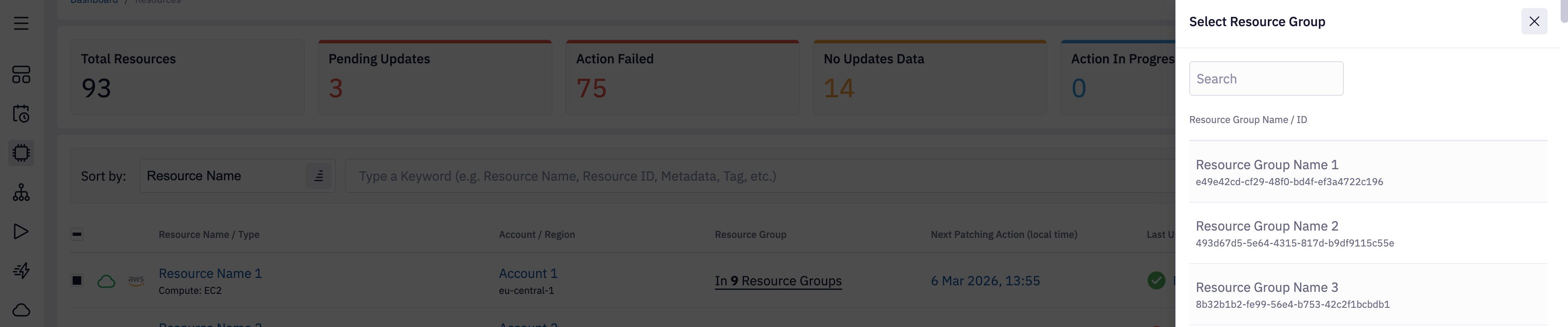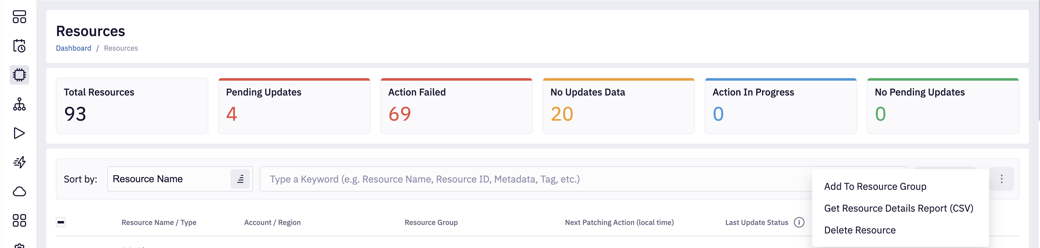Resource Group - Search for resources in the selected resource group. See Resource Groups page to get more information.